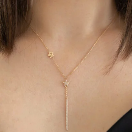 GARGANTILLA GINEBRA ORO 10K ESTRELLA C/ ZIRCONIAS Y BARRA LARGA