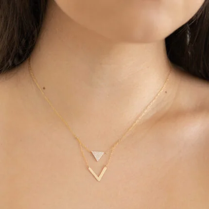 GARGANTILLA GENESIS TRIANGULOS ZIRCONIAS ORO 10K
