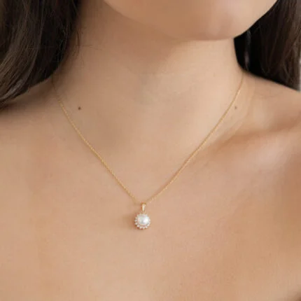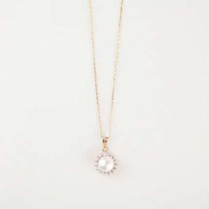GARGANTILLA GERALDINE PERLA NATURAL CON BISEL ZIRCONIA ORO 10K