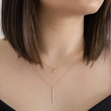 GARGANTILLA GRISEL ZIRCONIA Y BARRA LISA ORO 10K
