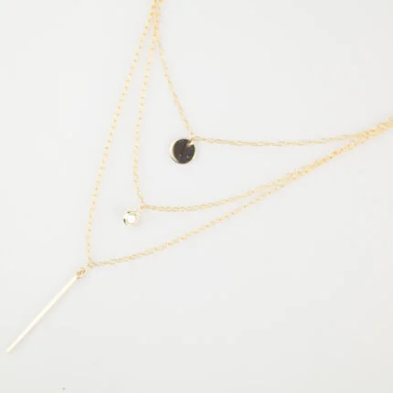 GARGANTILLA GRACIA TRIPLE CADENA BARRITA-CIRCULO Y ZIRCONIA ORO 10K