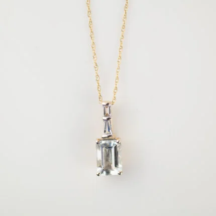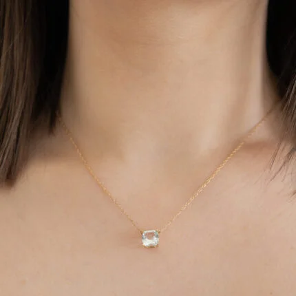 GARGANTILLA ORO 10K ACUAMARINA 7MM CORTE PRINCESA