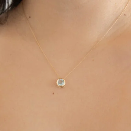 GARGANTILLA ORO 10K AQUAMARINA Y DIAMANTE
